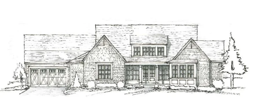 The exterior elevation captures the essence of "approachable elegance." Defined by steep, confident gables and a welcoming arched entryway, the façade blends classic masonry with clean lines to create a timeless aesthetic. The carriage-style garage doors and tall, light-filled windows offer a nod to traditional craftsmanship while maintaining a fresh, transitional feel that fits perfectly within the neighborhood.
